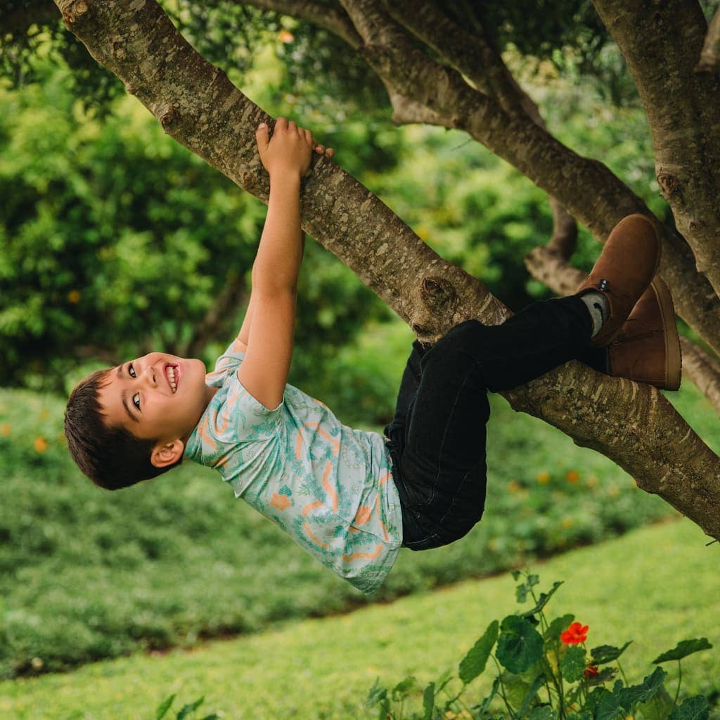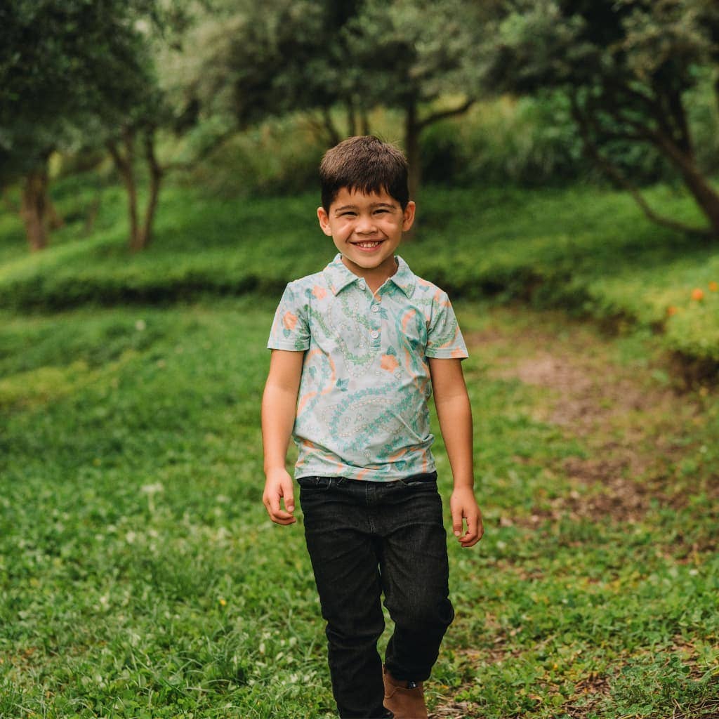 Meet your little one's new favorite polo. Made from our signature huggably soft fabric and perfect for dressing your little one up and making sure they stay comfortable while doing it! A bold tribute to timeless lei. Celebrate the timeless art of giving with Lei Stand—a vibrant, hand-drawn print by local artist Jana Lam. Featuring a lively mix of kukui nut, maile, ʻilima, ti leaf, and pīkake, Lei Stand captures the strength, tradition, and spirit woven into every lei. Bold yet full of heart, this print is a joyful tribute to the everyday magic of aloha.